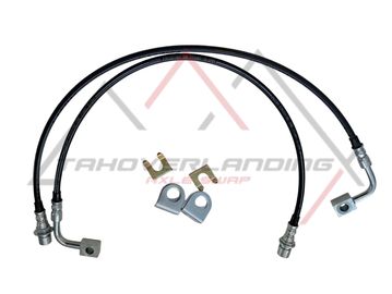 CUSTOM MADE BRAKE LINES WITH 1/4" BRAKE FLARE FITTINGS FOR GM SIDE, AND BANJO FITTINGS FITTING DODGE CALIPER. WITH MOUNTING BRACKETS AND CLIPS
